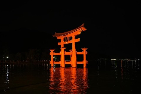 宮島の高台に佇む当館からは、海側のお部屋を中心に、世界遺産・厳島神社の大鳥居を望む絶景が広がります。
