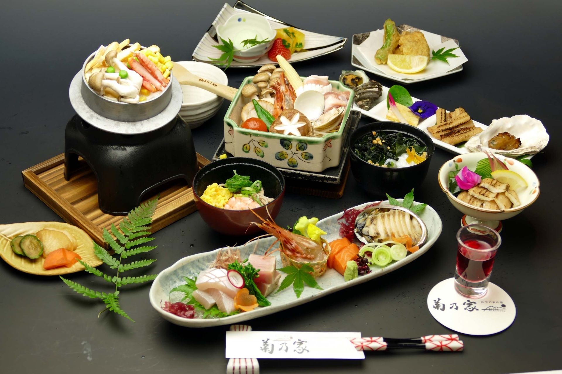 海を眺めながら、森の癒やしに包まれる菊乃家の客室は、寛ぎをコンセプトにお客様の好みによってお選びいただける和と洋様々なお部屋をご用意しております。