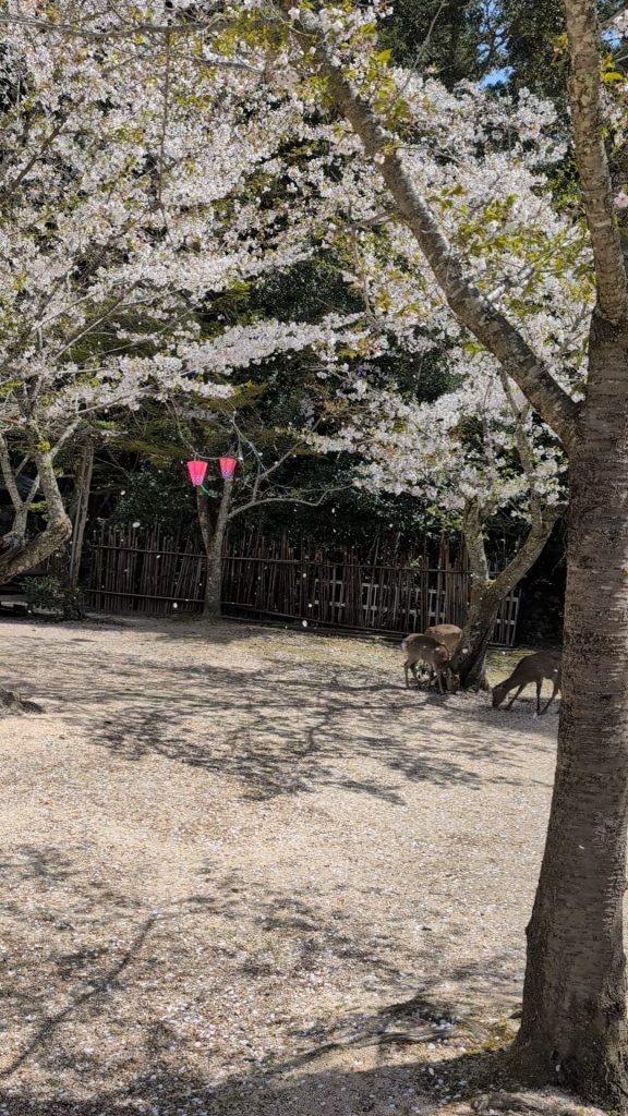 舞い散った花びらは、鹿ちゃんのえさになってます・・・