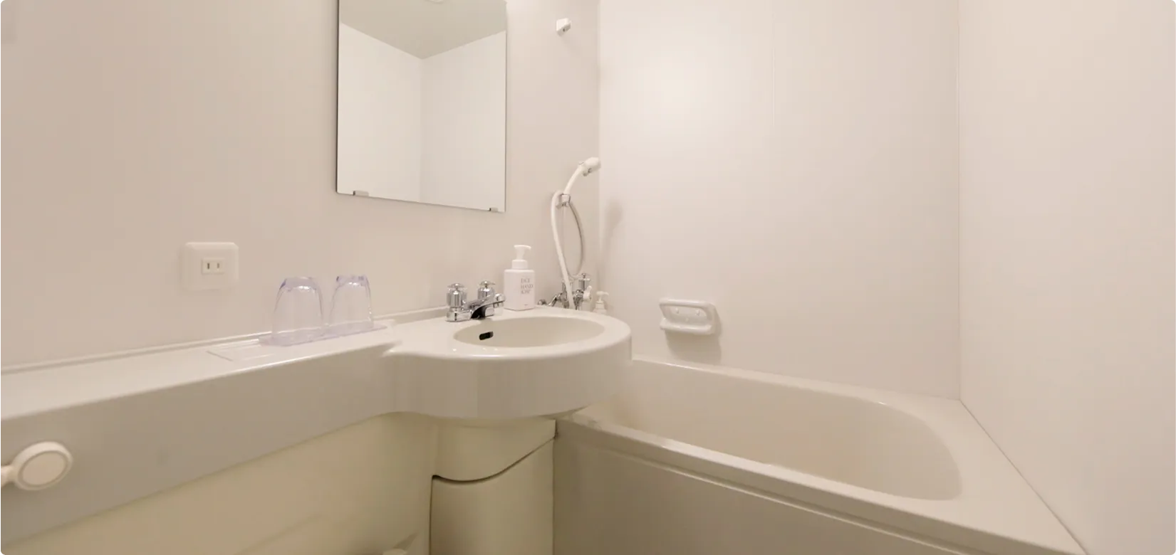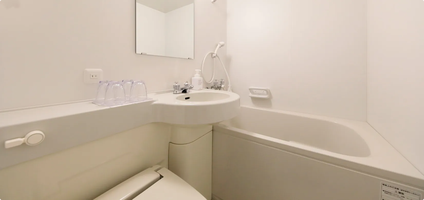バス・トイレ付きの機能的なつくりで、一人旅やカップルにおすすめ。