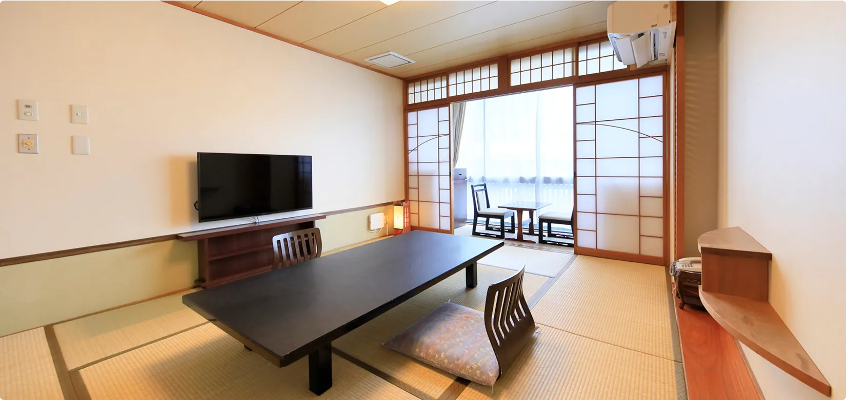 | 設備 | バスなし・トイレ付(大浴場をご利用いただけます)、ネット対応43型液晶テレビ、空気清浄機能付きエアコン |