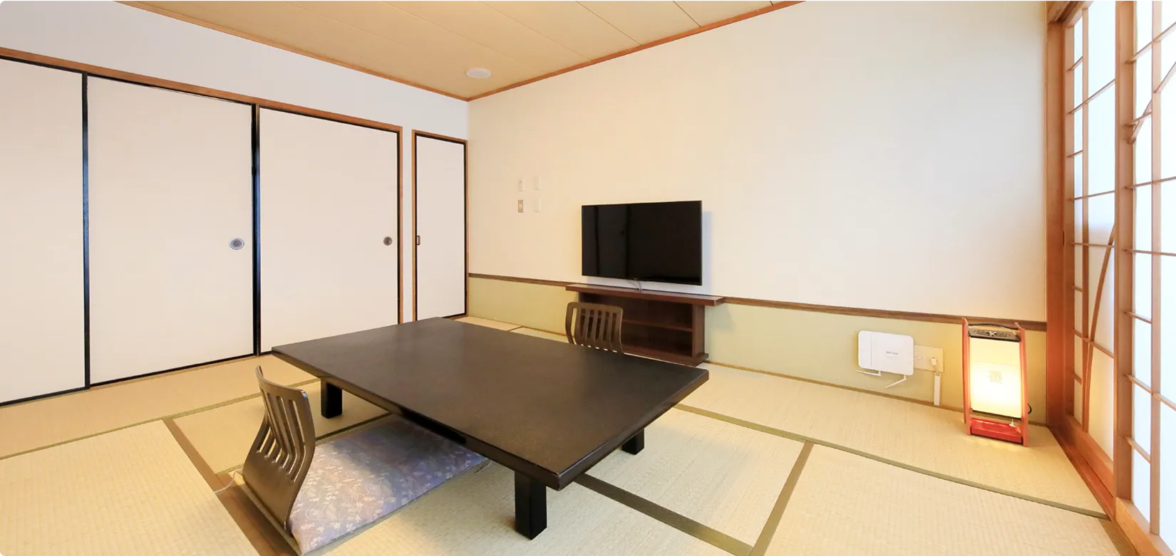 | 設備 | バス・トイレ付(大浴場もご利用いただけます)、ネット対応49型液晶テレビ、空気清浄機能付きエアコン |