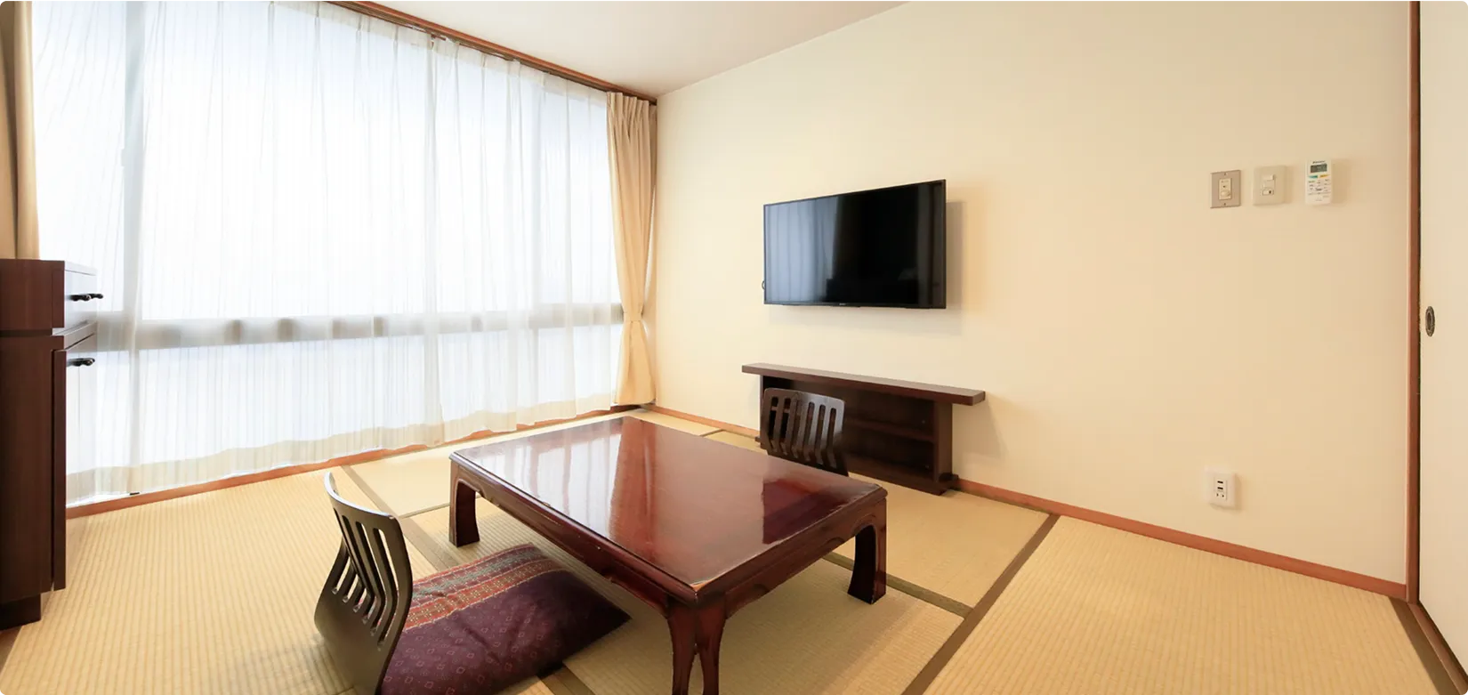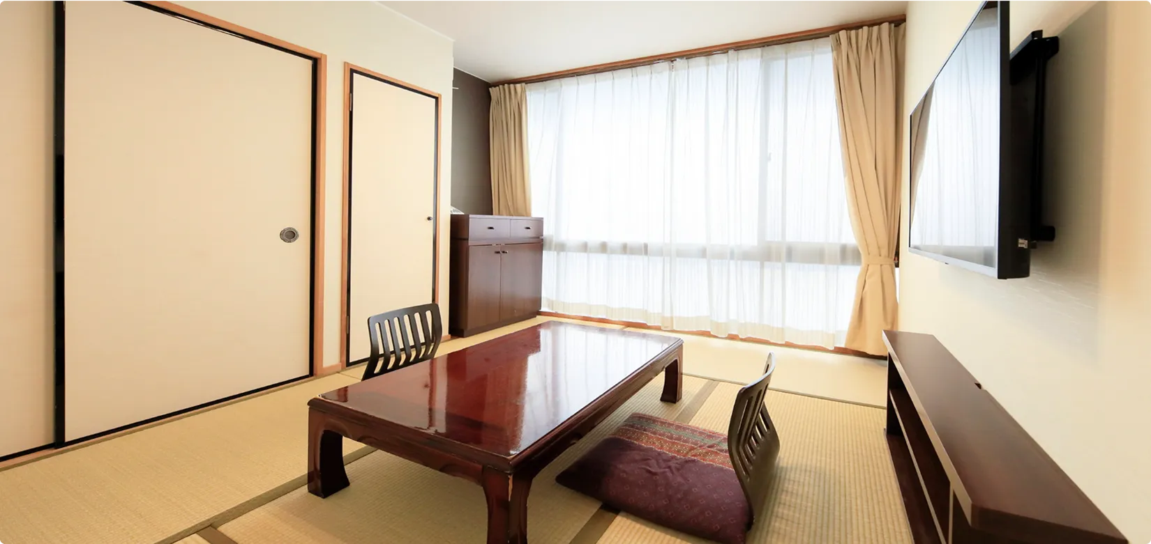 | 個別設備 | バス・トイレ付(大浴場もご利用いただけます)、ネット対応43型液晶テレビ、一部ミニキッチン付き |