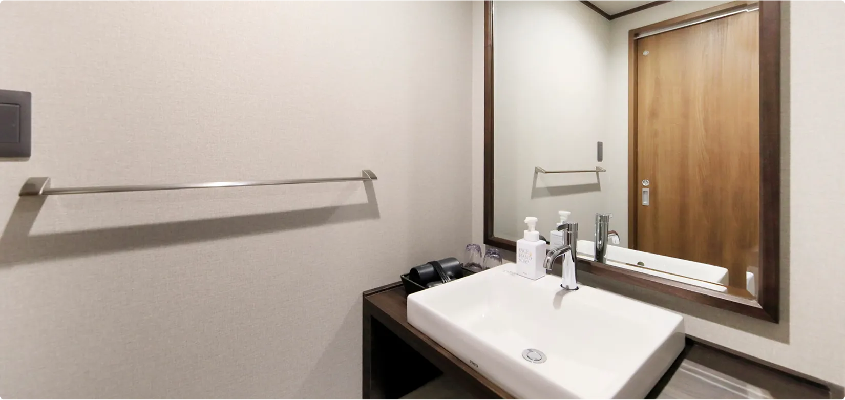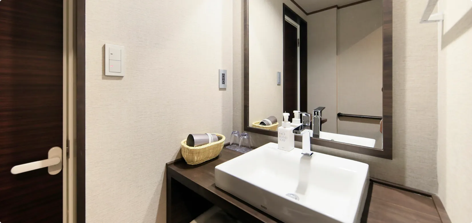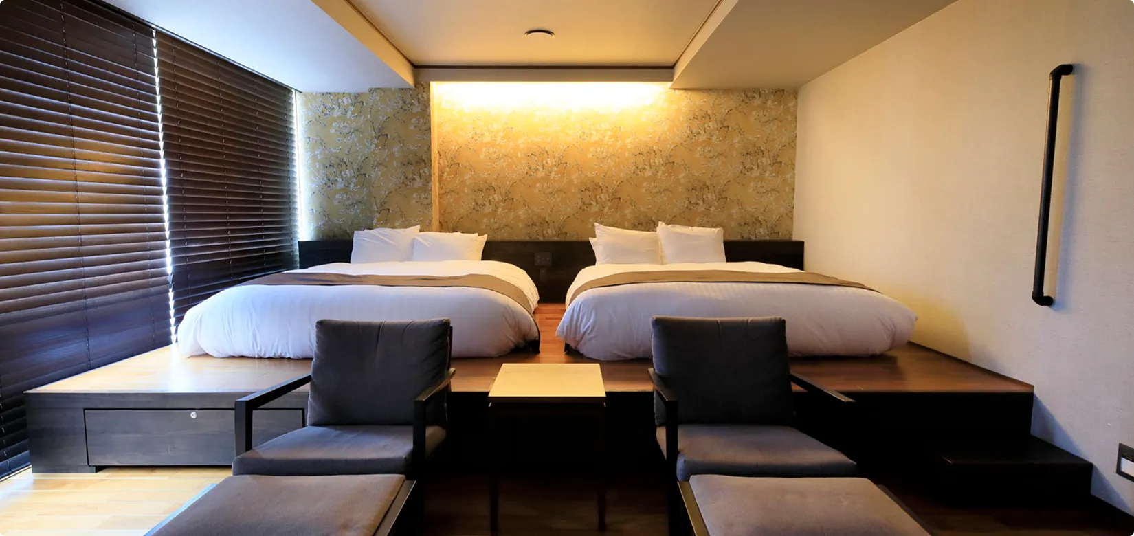 手すりも設置され、親子三世代のご滞在にも最適なお部屋です。(プレミアムルーム限定のウエルカムドリンクサービス付き)