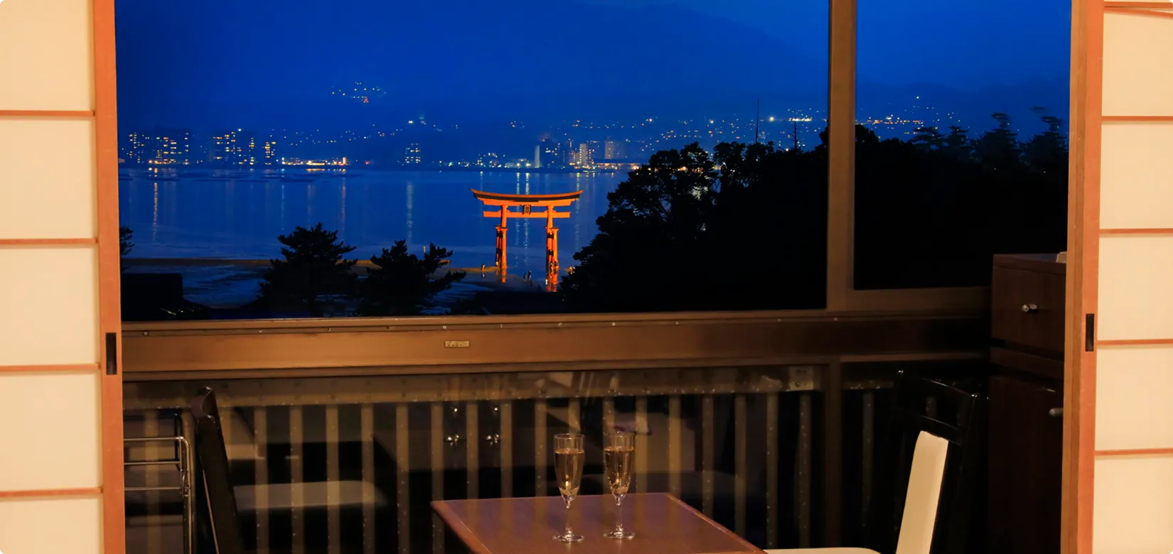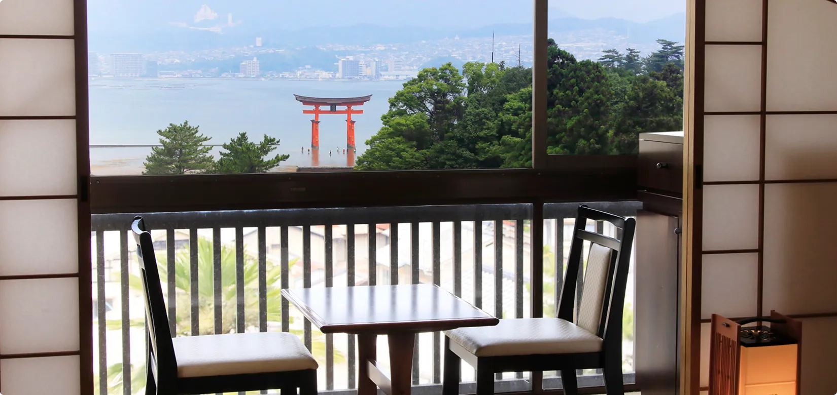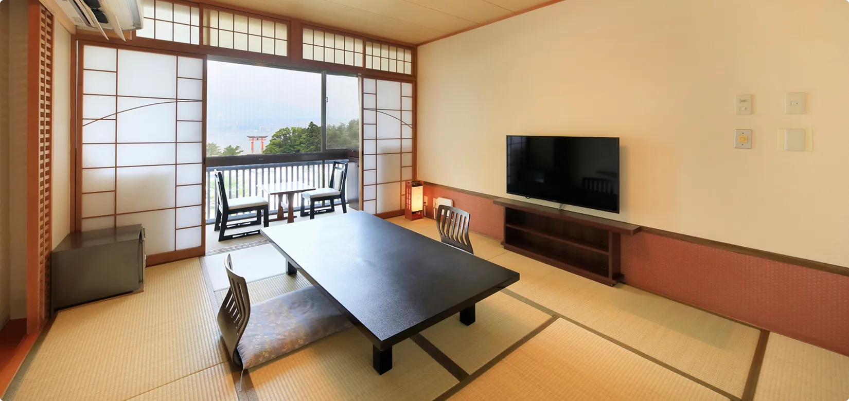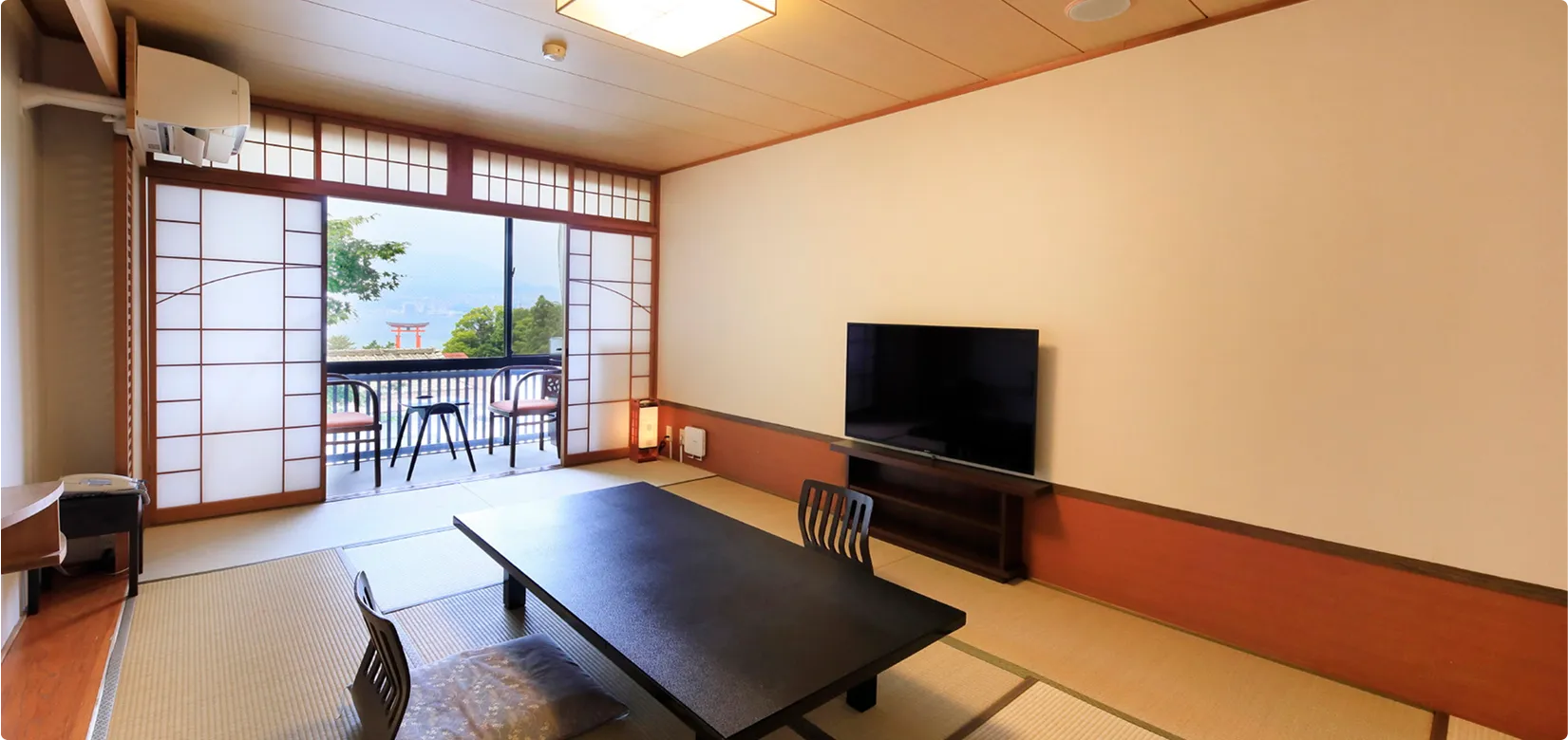 瀬戸内海と厳島神社の大鳥居を望む、当館人気No.1の海側和室。2~3名様におすすめのお部屋です。